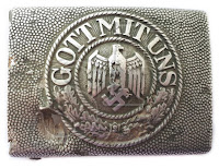 So how did Joel Salatin put it ??? "Wow, that does make interesting conundrums does'nt it ?" Except this conundrum hits both ways for people of the Pro-Choice and Pro-Life crows. Of course the obvious meaning here is the controversial subject of abortion being alluded to. One side believing an embryo is nothing more than unviable tissue mass and the other side claiming it's life, even labeling themselves 'Pro-Life.' I don't mind the term pro-life, but the person using the term would have to be consistent in their view of life. For example, many who claim abortion kills life (I agree), sometimes view abortion as okay if the pregnancy is the result of rape. But this just begs the question, 'Is such a baby conceived as a result of rape not also a human life ??? Then there's the other issue where almost all folks claiming to be pro-life are also pro-military & diehard God & Country proponents. Hence when that baby is finally allowed to be born, it's later expected to support both God & Country during war time when it's country demands complete unquestioning obedience, possibly killing other like minded people with their same religious worldview. This requires going out and killing another life or themselves being killed when engaging in such a risky occupation. Not to poke fun here, but ponder for a moment, how exactly is that a pro-life stance ??? During World War II the people claiming to be Christians from both sides claimed God was on their side and they were told that by their very own Ecclesiastical Hierachical Authorites, even where the same demoninations existed on both sides. Although those Christians from the Allied side viewed their version as being on the righteous side of the issue, so did Nazi Germany as shown below by the often worn pin or badge by soldiers who believed God would give them the victory.